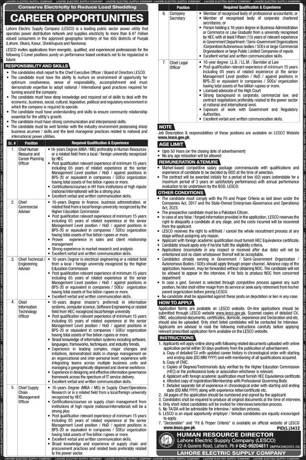 - Visit to the official LESCO website or check trusted jobs portals